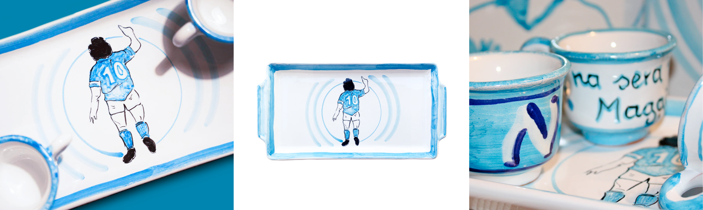 I colori, i simboli e le grafiche sono un chiaro omaggio al calcio Napoli, alla passione azzurra e a quel senso di appartenenza che unisce generazioni di tifosi. Non sono semplici tazzine: sono piccoli manifesti da tavola, pensati per trasformare il caffè in un gesto identitario.